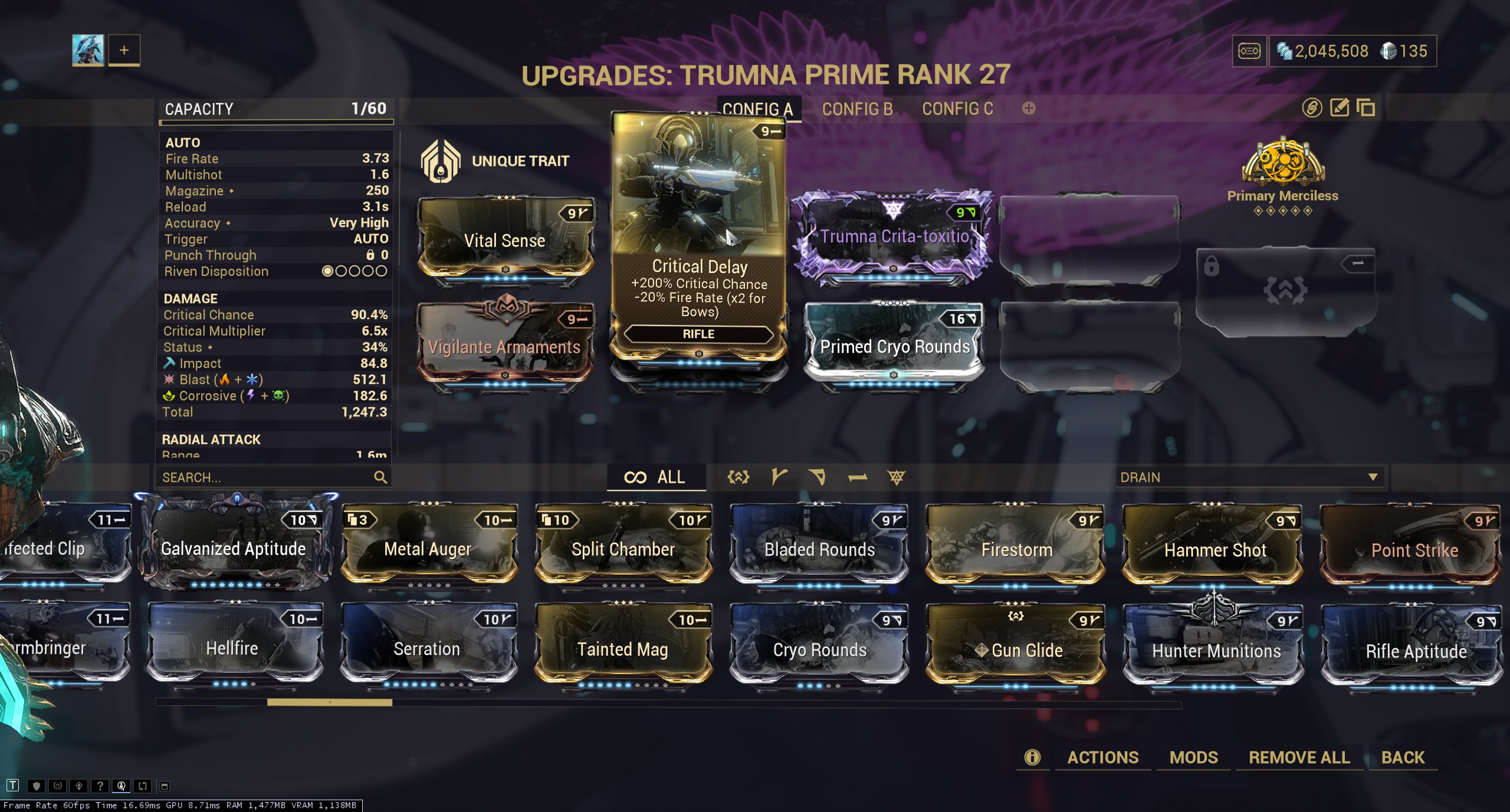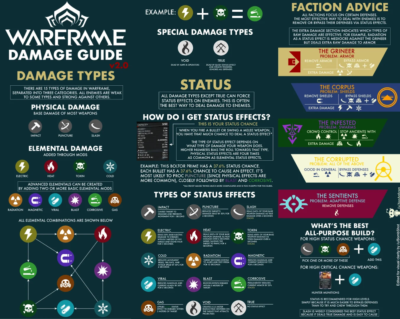 What makes warframe's system special is that there's no one way to modify a weapon. By combining critical hits, and status effects, which every weapon can make use of, but some better than others, you give the player a choice in what to focus when modifying their weapon. To take it a step further, each damage type can be used either for their damage multiplier against certain types of enemies, or for their status effect, which applies some kind of debuff to the enemy, a system so complex that the wiki for damage types has over 10.000 words.